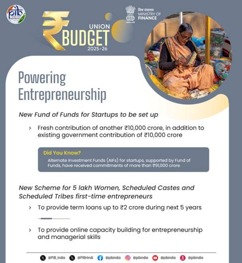 🔶 A new fund of funds of Rs 10,000 crore will be set up for start-ups.