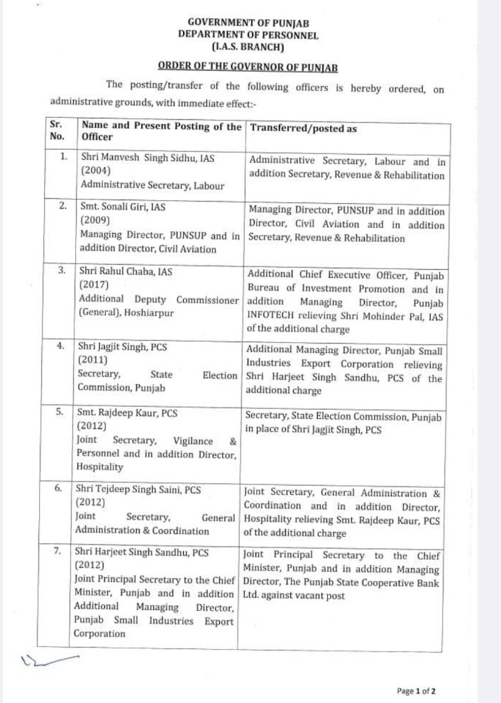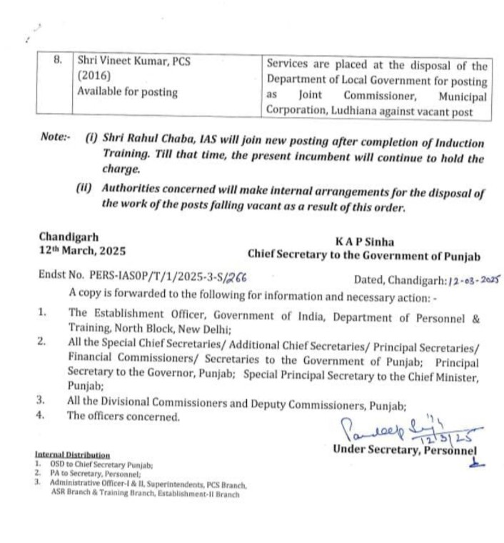 ਪੰਜਾਬ, ਮੁੱਖ ਖ਼ਬਰਾਂ ਪੰਜਾਬ ਸਰਕਾਰ ਵੱਲੋਂ ਵੱਡਾ ਫੇਰਬਦਲ, 3 IAS ਸਮੇਤ 7 PCS ਅਧਿਕਾਰੀਆਂ ਦੇ ਤਬਾਦਲੇ:- ਪੜ੍ਹੋ ਸੂਚੀ March 12, 2025 ਨਿਊਜ਼ ਪੰਜਾਬ,12 ਮਾਰਚ 2025 ਪੰਜਾਬ ਸਰਕਾਰ ਵੱਲੋਂ 3 IAS ਸਮੇਤ 7 PCS ਅਧਿਕਾਰੀਆਂ ਦੇ ਤਬਾਦਲੇ ਕੀਤੇ
