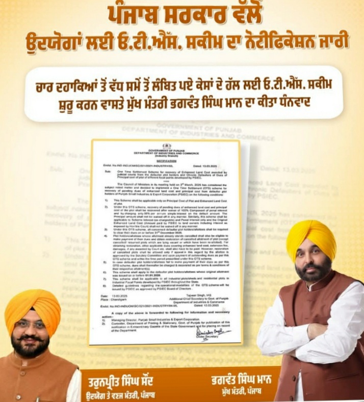 ਪੰਜਾਬ ਸਰਕਾਰ ਵੱਲੋਂ ਉਦਯੋਗਪਤੀਆਂ ਨੂੰ ਰਾਹਤ ਦੇਣ ਲਈ ਓ.ਟੀ.ਐੱਸ. ਸਕੀਮ ਲਈ ਨੋਟੀਫਿਕੇਸ਼ਨ ਜਾਰੀ – ਮੰਤਰੀ ਸੌਂਦ ਵੱਲੋਂ ਮੁੱਖ ਮੰਤਰੀ ਦਾ ਧੰਨਵਾਦ ਨਿਊਜ਼ ਪੰਜਾਬ ਲੁਧਿਆਣਾ, 15 ਮਾਰਚ – ਪੰਜਾਬ ਦੇ ਉਦਯੋਗਪਤੀਆਂ ਨੂੰ ਵੱਡੀ ਰਾਹਤ ਪ੍ਰਦਾਨ ਕਰਦਿਆਂ ਮੁੱਖ ਮੰਤਰੀ ਭਗਵੰਤ ਸਿੰਘ ਮਾਨ ਦੀ…
