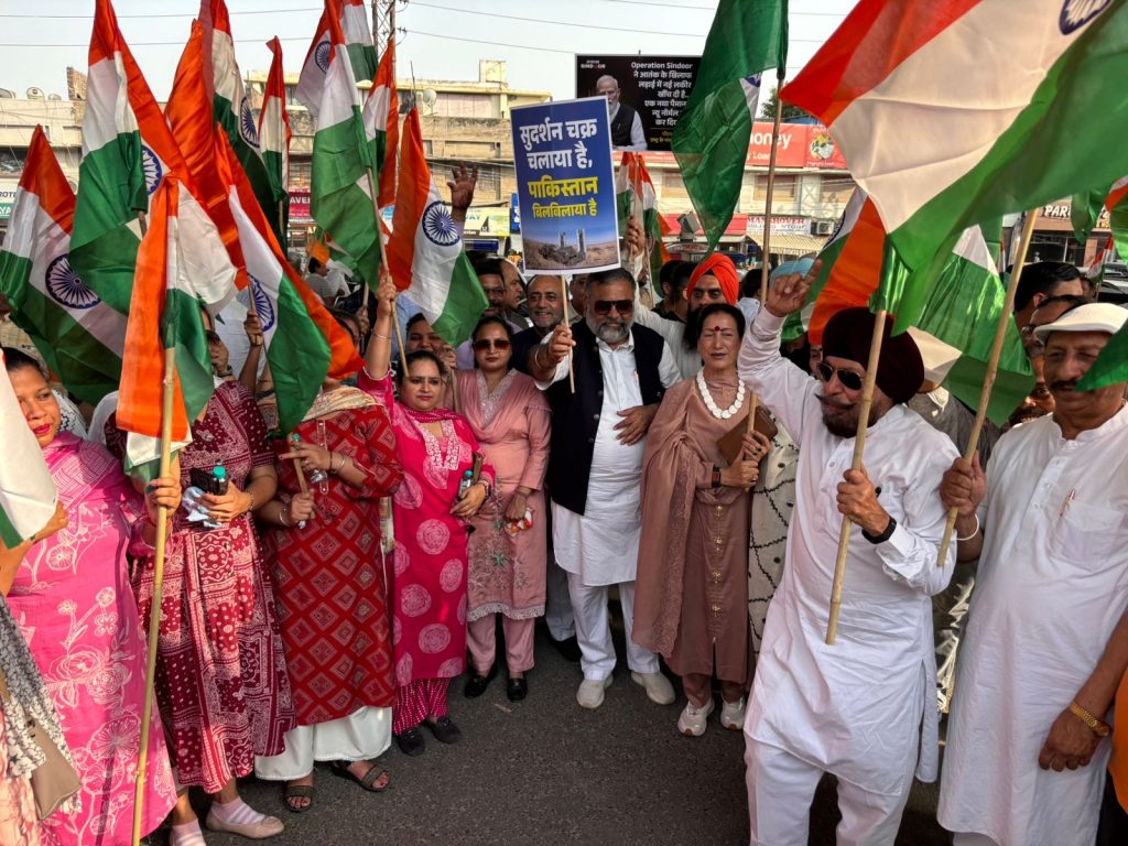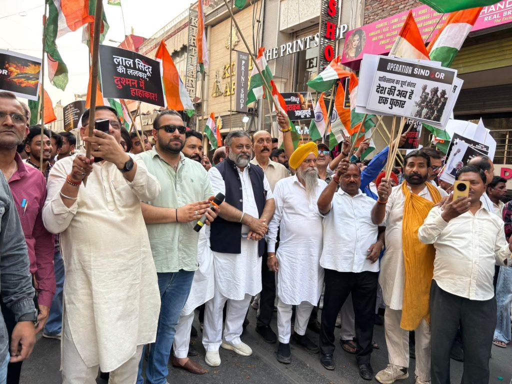 ਲੁਧਿਆਣਾ, 17 ਮਈ ( ਰਣਜੀਤ ਸਿੰਘ ਖ਼ਾਲਸਾ ) ਪਹਿਲਗਾਮ ਵਿੱਚ ਪਾਕਿਸਤਾਨ ਸਪਾਂਸਰਡ ਅੱਤਵਾਦੀ ਘਟਨਾ ਦੇ ਜਵਾਬ ਵਿੱਚ ਭਾਰਤ ਦੇ ‘ਆਪ੍ਰੇਸ਼ਨ ਸਿੰਦੂਰ’ ਦੀ ਸਫਲਤਾ ਦੇ ਸਮਰਥਨ ਵਿੱਚ, ਸ਼ਹਿਰ ਦੇ ਨਾਗਰਿਕਾਂ ਨੇ ਅੱਜ ਜ਼ਿਲ੍ਹਾ ਭਾਜਪਾ ਪ੍ਰਧਾਨ ਰਜਨੀਸ਼ ਧੀਮਾਨ ਦੀ ਪ੍ਰਧਾਨਗੀ ਹੇਠ ਰਾਸ਼ਟਰੀ ਸੁਰੱਖਿਆ ਮੰਚ ਅਤੇ ਭਾਜਪਾ ਦੇ ਸਹਿਯੋਗ ਨਾਲ ਇੱਕ ਵਿਸ਼ਾਲ ਤਿਰੰਗਾ ਯਾਤਰਾ ਕੱਢੀ। ਇਸ ਵਿਸ਼ਾਲ ਯਾਤਰਾ ਵਿੱਚ ਨੌਜਵਾਨਾਂ, ਬੱਚਿਆਂ, ਔਰਤਾਂ ਅਤੇ ਬਜ਼ੁਰਗਾਂ ਸਾਰਿਆਂ ਨੇ ਉਤਸ਼ਾਹ ਨਾਲ ਹਿੱਸਾ ਲਿਆ। ਇਹ ਤਿਰੰਗਾ ਯਾਤਰਾ ਆਰਤੀ ਚੌਕ ਤੋਂ ਸ਼ੁਰੂ ਹੋ ਕੇ ਘੁਮਾਰ ਮੰਡੀ ਚੌਕ ਵਿੱਚ ਸਮਾਪਤ ਹੋਈ। ਯਾਤਰਾ ਦੌਰਾਨ ਘੁਮਾਰ ਮੰਡੀ ਦਾ ਪੂਰਾ ਮਾਹੌਲ ‘ਭਾਰਤ ਮਾਤਾ ਕੀ ਜੈ’, ‘ਵੰਦੇ ਮਾਤਰਮ’ ਅਤੇ ‘ਜੈ ਹਿੰਦ’ ਦੇ ਦੇਸ਼ ਭਗਤੀ ਦੇ ਨਾਅਰਿਆਂ ਨਾਲ ਗੂੰਜ ਉੱਠਿਆ। ਇਸ ਵਿਸ਼ਾਲ ਤਿਰੰਗਾ ਯਾਤਰਾ ‘ਚ ਭਾਜਪਾ ਦੇ ਸੂਬਾ ਜਨਰਲ ਸਕੱਤਰ ਅਨਿਲ ਸਰੀਨ, ਸੂਬਾ ਮੀਤ ਪ੍ਰਧਾਨ ਜਤਿੰਦਰ ਮਿੱਤਲ, ਸਕੱਤਰ ਰੇਣੂ ਥਾਪਰ, ਖਜ਼ਾਨਚੀ ਗੁਰਦੇਵ ਸ਼ਰਮਾ ਦੇਵੀ, ਜੀਵਨ ਗੁਪਤਾ ਨੇ ਵਿਸ਼ੇਸ਼ ਤੌਰ ‘ਤੇ ਸ਼ਿਰਕਤ ਕੀਤੀ | ਤਿਰੰਗਾ ਯਾਤਰਾ ਨੂੰ ਸੰਬੋਧਨ ਕਰਦਿਆਂ ਜ਼ਿਲ੍ਹਾ ਭਾਜਪਾ ਪ੍ਰਧਾਨ ਰਜਨੀਸ਼ ਧੀਮਾਨ ਨੇ ਭਾਰਤੀ ਫੌਜ ਦੀ ਬਹਾਦਰੀ, ਸ਼ਾਨ ਅਤੇ ਬਹਾਦਰੀ ਨੂੰ ਸ਼ਰਧਾਂਜਲੀ ਭੇਟ ਕੀਤੀ ਅਤੇ ਕਿਹਾ ਕਿ ਅੱਜ ਭਾਰਤ ਬਦਲ ਗਿਆ ਹੈ। ਜੇਕਰ ਕਿਸੇ ਦੇਸ਼ ਵਿੱਚ ਪਾਕਿਸਤਾਨ ਨੂੰ ਧੂੜ ਚਟਾਉਣ ਦੀ ਤਾਕਤ ਹੈ, ਤਾਂ ਉਹ ਭਾਰਤ ਹੈ। ਆਪ੍ਰੇਸ਼ਨ ਸਿੰਦੂਰ ਦੀ ਸਫਲਤਾ ਪ੍ਰਧਾਨ ਮੰਤਰੀ ਨਰਿੰਦਰ ਮੋਦੀ ਦੇ ਦ੍ਰਿੜ ਇਰਾਦੇ ਦਾ ਨਤੀਜਾ ਹੈ। ਭਾਰਤੀ ਫੌਜ ਨੇ ਨਾ ਸਿਰਫ਼ ਪਾਕਿਸਤਾਨ ਦੇ ਹਮਲੇ ਨੂੰ ਨਾਕਾਮ ਕੀਤਾ ਸਗੋਂ ਪਾਕਿਸਤਾਨ ਦੇ ਅੰਦਰ ਜਾ ਕੇ ਅੱਤਵਾਦੀਆਂ ਨੂੰ ਤਬਾਹ ਵੀ ਕਰ ਦਿੱਤਾ। ਜ਼ਿਆਦਾਤਰ ਅੱਤਵਾਦੀ ਮਾਰੇ ਗਏ।
