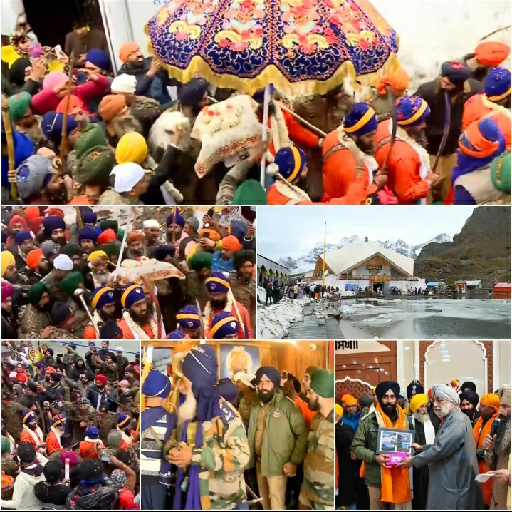 ਗੋਵਿੰਦਘਾਟ, 25 ਮਈ – ਉੱਤਰਾਖੰਡ ‘ਚ ਗੁਰਦੁਆਰਾ ਸ੍ਰੀ ਹੇਮਕੁੰਟ ਸਾਹਿਬ ਦੇ ਕਿਵਾੜ ਅੱਜ ਐਤਵਾਰ ਨੂੰ ਸੰਗਤ ਵਾਸਤੇ ਖੋਲ੍ਹ ਦਿੱਤੇ ਗਏ, ਪੰਜ ਪਿਆਰਿਆਂ ਦੀ ਅਗਵਾਈ ਵਿੱਚ ਸਿੱਖ ਸੰਗਤਾਂ ਜ੍ਹਿਨਾਂ ਵਿੱਚ ਫੌਜ਼ ਦੇ ਜਵਾਨ, ਨਿਹੰਗ ਸਿੰਘ ਵੀ ਸ਼ਾਮਲ ਸਨ ਗੁਰੂ ਗ੍ਰੰਥ ਸਾਹਿਬ ਦੀ ਸਵਾਰੀ ਸਿੱਖ ਪ੍ਰੰਪਰਾਵਾਂ ਅਨੁਸਾਰ ਵੱਡੇ ਇਕੱਠ ਦੇ ਨਾਲ ਗੁਰਦਵਾਰਾ ਸਾਹਿਬ ਲੈ ਕੇ ਪੁੱਜੇ ਅਤੇ ਸਿੱਖ ਧਾਰਮਿਕ ਪਰੰਪਰਾਵਾਂ ਦੇ ਮੁਤਾਬਕ ਸ੍ਰੀ ਗੁਰੂ ਗ੍ਰੰਥ ਸਾਹਿਬ ਦਾ ਪ੍ਰਕਾਸ਼ ਕੀਤਾ ਗਿਆ ਹੈ।