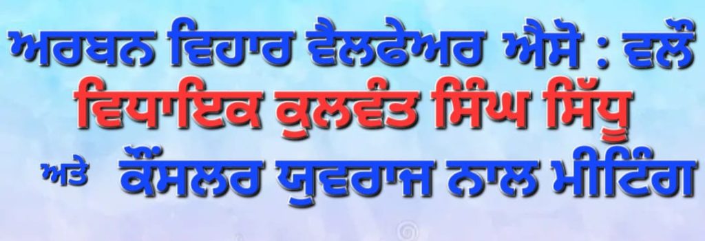 ਲੁਧਿਆਣਾ, 7 ਜੂਨ – ਇੱਥੇ, ਵਿਹਾਰ ਵੈਲਫੇਅਰ ਐਸੋਸੀਏਸ਼ਨ (ਰਜਿਸਟਰਡ) ਵਾਰਡ ਨੰ: 50 ਵੱਲੋਂ ਇਲਾਕੇ ਦੇ ਵਿਕਾਸ ਲਈ ਆ ਰਹੀਆਂ ਮੁਸ਼ਕਲਾਂ ਦੇ ਹੱਲ ਵਾਸਤੇ ਹਲਕੇ ਦੇ ਵਿਧਾਇਕ ਕੁਲਵੰਤ ਸਿੰਘ ਸਿੱਧੂ ਅਤੇ ਇਲਾਕਾ ਕੌਂਸਲਰ ਯੁਵਰਾਜ ਸਿੰਘ ਸਿੱਧੂ ਨਾਲ ਅਰਬਨ ਵਿਹਾਰ ਵੈਲਫੇਅਰ ਐਸੋਸੀਏਸ਼ਨ ਦੇ ਪ੍ਰਧਾਨ ਹਰਿੰਦਰ ਸਿੰਘ ਭੋਲੂ ਦੇ ਗ੍ਰਹਿ ਵਿਖ਼ੇ ਮੀਟਿੰਗ ਕੀਤੀ,