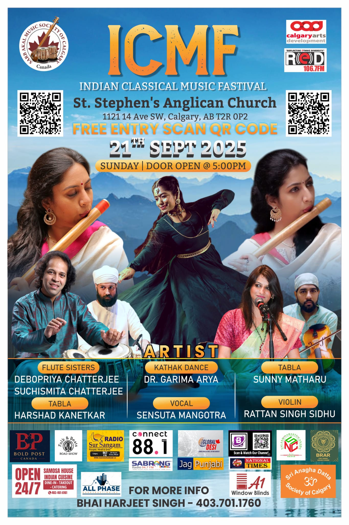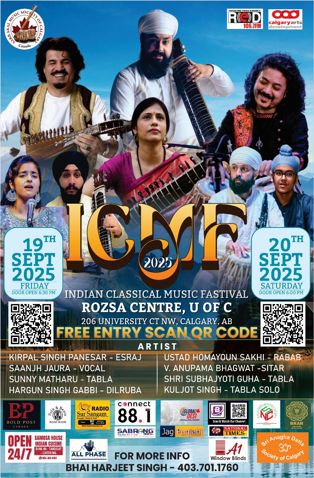 ਕੈਲਗਰੀ, 20 ਸਤੰਬਰ – ਕੈਲਗਰੀ ਦੀ ਸਰਬ ਅਕਾਲ ਸੰਗੀਤ ਸੋਸਾਇਟੀ ਵੱਲੋਂ ਬੀਤੀ ਰਾਤ ਕੀਤੇ ਇੰਡੀਅਨ ਕਲਾਸੀਕਲ ਮਿਊਜ਼ਿਕ ਫੈਸਟੀਵਲ (ICMF 2025) ਦੇ ਪਹਿਲੇ ਦਿਨ ਹੀ ਉੱਘੇ ਕਲਾਕਾਰਾਂ ਨੇ ਪੁਰਾਤਨ ਭਾਰਤੀ ਸੰਗੀਤ ਨੂੰ ਵਿਦੇਸ਼ੀ ਧਰਤੀ ਤੇ ਜਿਉਂਦਾ ਕਰ ਵਿਖਾਇਆ ,