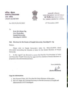 ਜਾਰੀ ਮਨਜੂਰੀ ਨੋਟੀਫਿਕੇਸ਼ਨ ‘ਚ ਉਪ ਰਾਸ਼ਟਰਪਤੀ ਦਫ਼ਤਰ ਦੀ ਸਕੱਤਰ ਸਰਿਤਾ ਚੌਹਾਨ ਨੇ ਕਿਹਾ ਕਿ ਚੋਣਾਂ ਯੂਨੀਵਰਸਿਟੀ ਵੱਲੋਂ ਪਹਿਲਾਂ ਪੇਸ਼ ਕੀਤੇ ਗਏ ਪੱਤਰ ਦੇ ਸ਼ਡਿਊਲ ਅਨੁਸਾਰ ਹੀ ਹੋਣਗੀਆਂ।ਦੱਸ ਦਈਏ ਕਿ ਪੰਜਾਬ ਯੂਨੀਵਰਸਿਟੀ ਸੈਨੇਟ ਦੀ ਮਿਆਦ ਪੰਜ ਸਾਲ ਹੁੰਦੀ ਹੈ ਅਤੇ ਪਿਛਲੀ ਸੈਨੇਟ 31 ਅਕਤੂਬਰ 2024 ਨੂੰ ਖਤਮ ਹੋ ਗਈ ਸੀ। ਕੇਂਦਰ ਸਰਕਾਰ ਨੇ ਨਵੀਂ ਸੈਨੇਟ ਦੀ ਚੋਣ ਤੋਂ ਪਹਿਲਾਂ ਹੀ ਪੁਰਾਣੀ ਸੈਨੇਟ ਨੂੰ ਭੰਗ ਕਰ ਦਿੱਤਾ, ਜਿਸ ਕਾਰਨ ਚੋਣਾਂ ਰੁਕ ਗਈਆਂ।