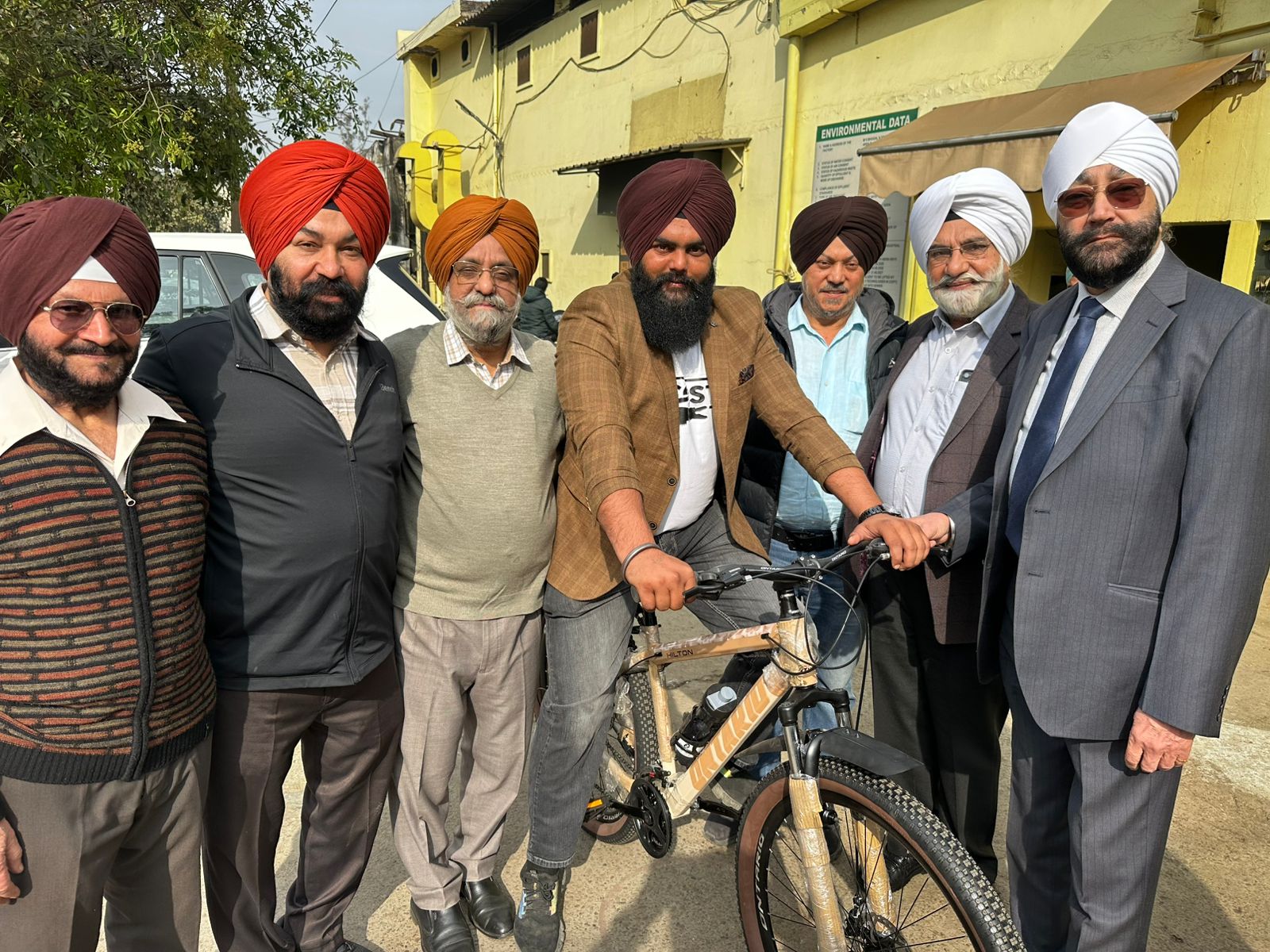 ਵਰਲਡ ਸਲੈਪ ਚੈਂਪੀਅਨਸ਼ਿਪ ਵਿੱਚ ਰੂਸ ਦੇ ਅਨਾਤੋਲੀ ਗਲੁਸ਼ਕਾ ਨੂੰ ਵਾਲੇ ਵਿਸ਼ਵ ਜੇਤੂ ਸਰਦਾਰ ਜੁਝਾਰ ਸਿੰਘ ਟਾਈਗਰ ਨੂੰ ਸਨਮਾਨਿਤ ਕਰਨ ਵੇਲੇ ਸ੍ਰ.ਅਵਤਾਰ ਸਿੰਘ ਭੋਗਲ ਵੱਲੋਂ ਹਾਈ ਐਂਡ ਸਾਈਕਲ ਪੇਸ਼ ਕੀਤਾ ਗਿਆ ਇਸ ਸਮੇਂ  ਗੁਰਚਰਨ ਸਿੰਘ ਜੈਮਕੋ, ਇੰਦਰਜੀਤ ਸਿੰਘ ਨਵਯੁੱਗ, ਰਜਿੰਦਰ ਸਿੰਘ ਸਰਹਾਲੀ, ਸੁਰਿੰਦਰ ਪਾਲ ਸਿੰਘ ਸੋਨੂੰ ਮੱਕੜ,  ਅਮਰੀਕ ਸਿੰਘ ਜੈਮਲ, ਹਰਵਿੰਦਰ ਸਿੰਘ ਅਤੇ ਹੋਰ ਉਦਯੋਗਪਤੀ ਮੋਜ਼ੂਦ ਸਨ