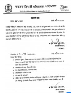 ਪਟਿਆਲਾ ਦੇ ਤਹਿਸੀਲਦਾਰ ਨੂੰ ਮੁਅੱਤਲ ਕਰ ਦਿੱਤਾ ਗਿਆ ਹੈ। ਡਿਪਟੀ ਕਮਿਸ਼ਨਰ ਡਾ. ਪ੍ਰੀਤੀ ਯਾਦਵ ਵਲੋਂ 9 ਜਨਵਰੀ ਨੂੰ ਜਾਰੀ ਹੁਕਮ ਅਨੁਸਾਰ ਤਹਿਸੀਲਦਾਰ ਕਰਨਦੀਪ ਸਿੰਘ ਭੁੱਲਰ ਨੂੰ ਤੁਰੰਤ ਪ੍ਰਭਾਵ ਨਾਲ ਮੁਅੱਤਲ ਕੀਤਾ ਗਿਆ ਹੈ। ਭੁੱਲਰ ਦੀ ਜਗ੍ਹਾ ‘ਤੇ ਨਾਭਾ ਤਹਿਸੀਲਦਾਰ ਨੂੰ ਪਟਿਆਲਾ ਤਹਿਸੀਲ ਦਾ ਵਾਧੂ ਚਾਰਜ ਦਿੱਤਾ ਗਿਆ ਹੈ।