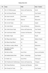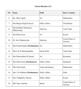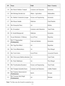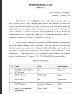 ਫਿਲਮ ਜਗਤ ਦੇ ਦਿਗਗਜ ਅਦਾਕਾਰ ਧਰਮਿੰਦਰ ਨੂੰ ਕਲਾ ਦੇ ਖੇਤਰ ਵਿੱਚ ਅਹੰਕਾਰਪੂਰਨ ਯੋਗਦਾਨ ਲਈ ਮਰਨ ਉਪਰੰਤ ਪਦਮ ਵਿਭੂਸ਼ਣ ਨਾਲ ਸਨਮਾਨਿਤ ਕੀਤਾ ਗਿਆ ਹੈ। ਇਸ ਤੋਂ ਇਲਾਵਾ, ਸਮਾਜਿਕ ਕਾਰਜ ਲਈ ਵੀ.ਐਸ. ਅਚਿਊਤਾਨੰਦਨ ਨੂੰ ਵੀ ਮਰਨ ਉਪਰੰਤ ਪਦਮ ਵਿਭੂਸ਼ਣ ਮਿਲਿਆ ਹੈ। ਕੇਰਲਾ ਦੇ ਕੇ.ਟੀ. ਥਾਮਸ, ਸਾਹਿਤ ਅਤੇ ਸਿੱਖਿਆ ਲਈ ਪੀ. ਨਾਰਾਇਣਨ, ਅਤੇ ਉੱਤਰ ਪ੍ਰਦੇਸ਼ ਦੇ ਐਨ. ਰਾਜਮ ਨੂੰ ਵੀ ਪਦਮ ਵਿਭੂਸ਼ਣ ਨਾਲ ਨਿਵਾਜਿਆ ਗਿਆ ਹੈ।